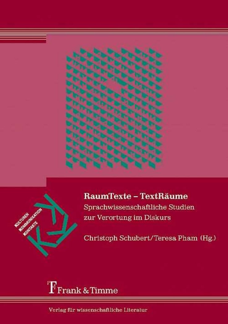Schubert, Christoph and Teresa Pham, eds. 2012. RaumTexte – TextRäume: Sprachwissenschaftliche Studien zur Verortung im Diskurs. Berlin: Frank & Timme. (Kulturen – Kommunikation – Kontakte 11)