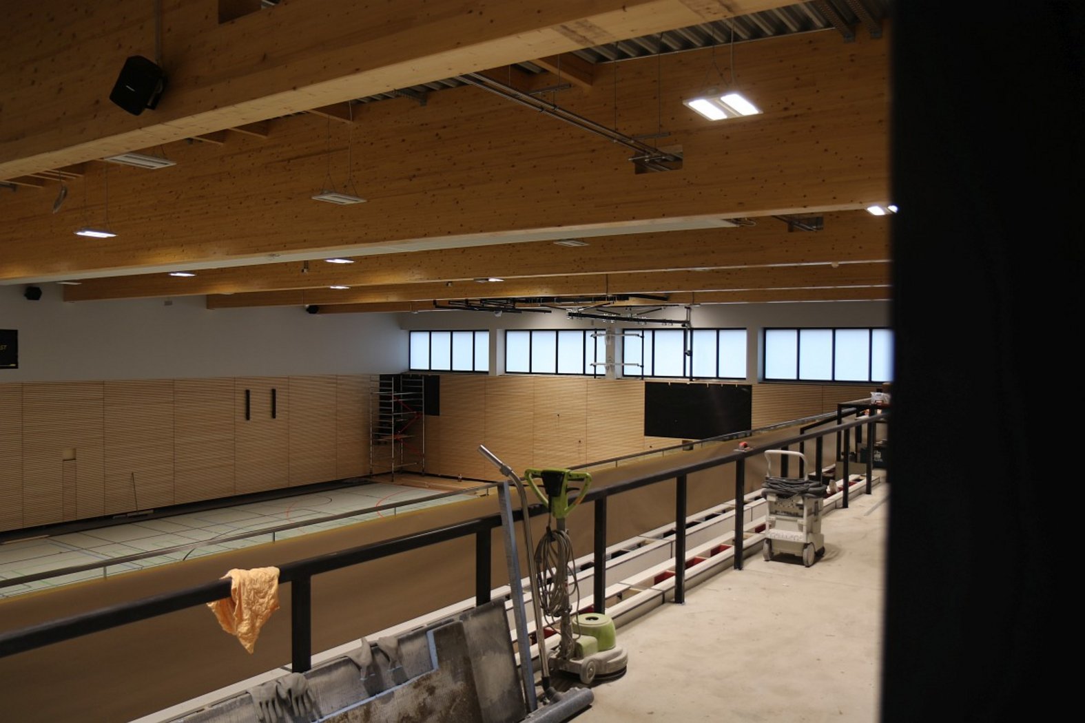 Die Universität Vechta setzt zusammen mit dem Staatlichen Baumanagement Region Nord-West eine neue Sporthalle um. Der Innenraum der Halle ist übersichtlich gestaltet. Im Erdgeschoss befinden sich eine Zweifeldhalle sowie Flächen für Geräte und Technik, ergänzt durch Umkleideräume mit Duschen und WC. Das erste Obergeschoss bietet eine Tribüne mit 150 Sitzplätzen entlang der gesamten Hallenlängsseite. Dahinter liegen weitere Funktionsbereiche wie Seminar- und Forschungsräume sowie Büros. Zudem kann die Sporthalle, einschließlich Foyer und Tribüne, für Veranstaltungen genutzt werden.