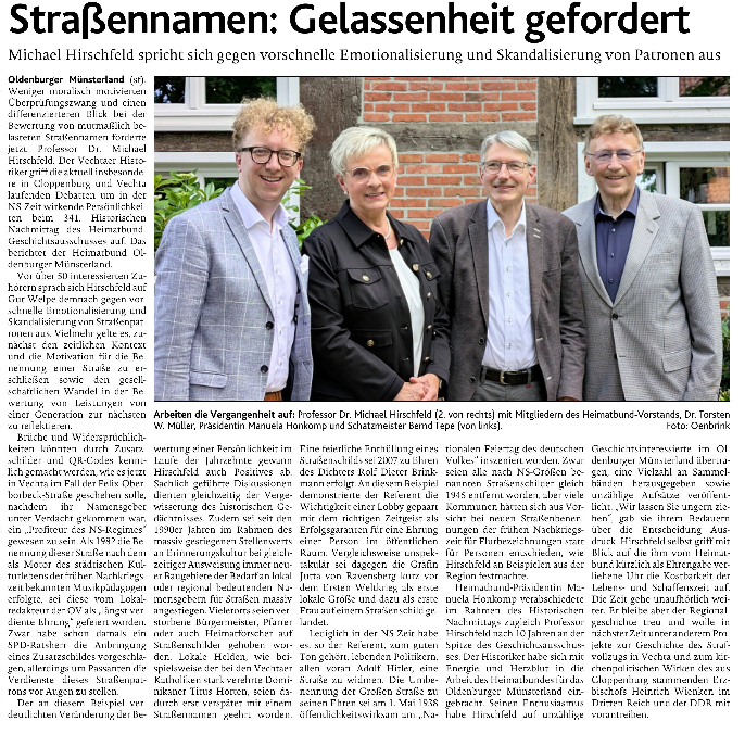 Michael Hirschfeld erhält Ehrengabe des Heimatbundes für das Oldenburger Münsterland