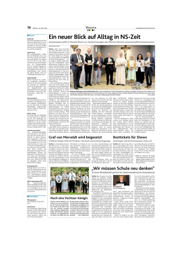 Historische Lieblingsplätze und Editionsprojekt Vechta in der NS-Zeit. Aus der Arbeit des Instituts für Regionalgeschichte und Katholizismusforschung (IRK). In: Oldenburger Münsterland. Jahrbuch 2025, 74. Jahrgang, Cloppenburg 2024, Seite 281-283.