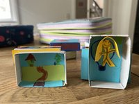 In Anlehnung an die Arbeit der Kinderbuchautorin Antje Damm gestalten die Kinder kleine Dioramen, also eine kleine, selbst gebaute Bühne in einer Streichholzschachtel und erzählen damit eigene Geschichten. Gemeinsam denken wir auch darüber nach, wie man mit Bildern Geschichten erzählen kann. Mit viel Kreativität, Papier, Farbe und Ideenreichtum entstehen kleine Bühnen, auf denen selbst erfundene Abenteuer lebendig werden.