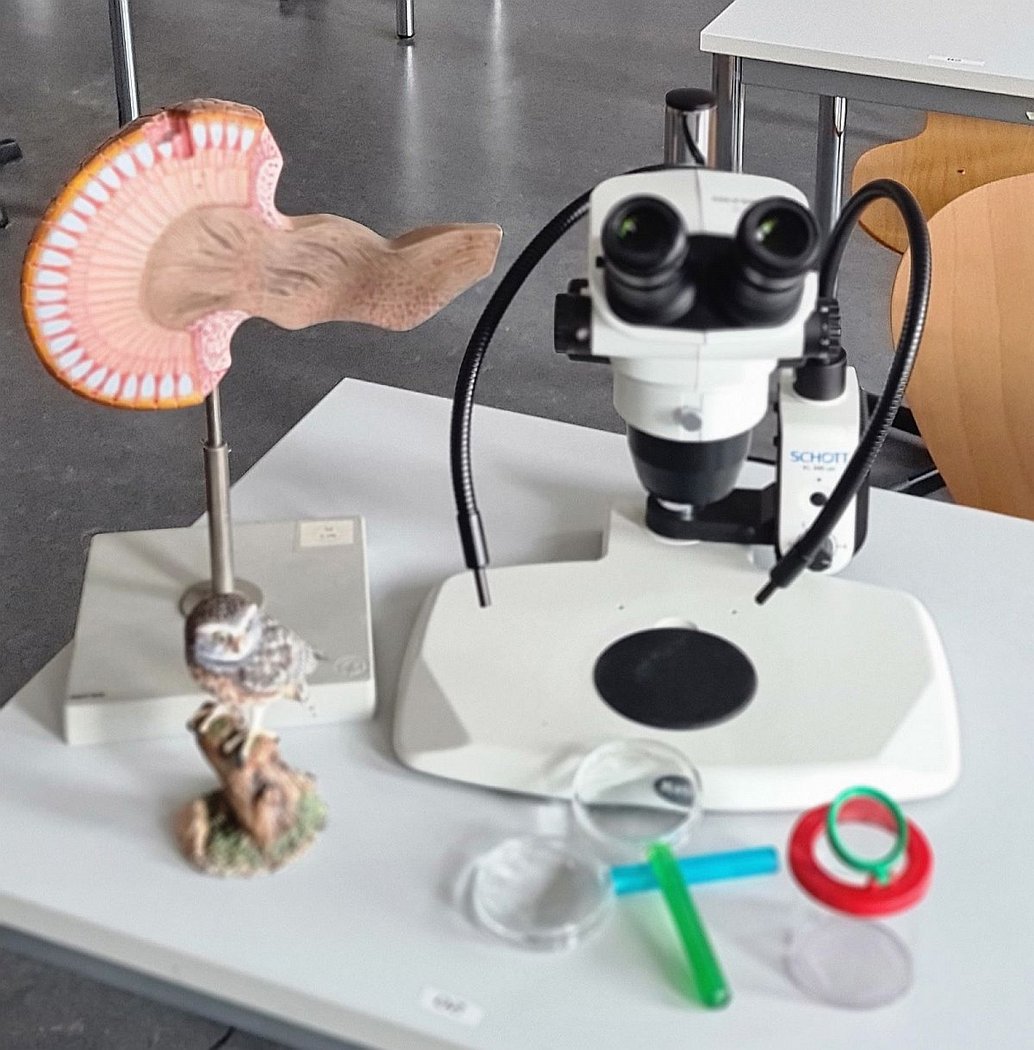 In der Biologie machen wir uns auf die Suche nach verschiedenen Arten von Augen: Mit der Lupe oder einem Blick durchs Mikroskop werden Augen bei kleinsten Lebewesen erforscht. Wer sieht wie gut? Vergleicht die Leistung eures eigenen Auges mit dem „Adlerauge“ eines Mäusebussards. Der hat nicht nur ein „eingebautes Fernrohr“, sondern kann auch viel mehr Farben & Licht sehen als ein Mensch.