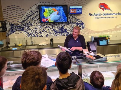 Auch kreative und kulinarische Aspekte kamen nicht zu kurz: Bei einem Sushi-Kurs bereiteten die Teilnehmenden „Nordsee-Sushi“ zu, während interaktive Spiele und Bastel-Aktionen zusätzliche Perspektiven auf nachhaltige, zukünftige Fischerei eröffneten. Ein besonderes Highlight war zudem die Besichtigung der Produktionsabläufe in der Fischverarbeitung von "Greenland Seafood" in Wilhelmshaven unter Leitung der Auszubildenden und anschließender Verköstigung von Fischstäbchen und Co.