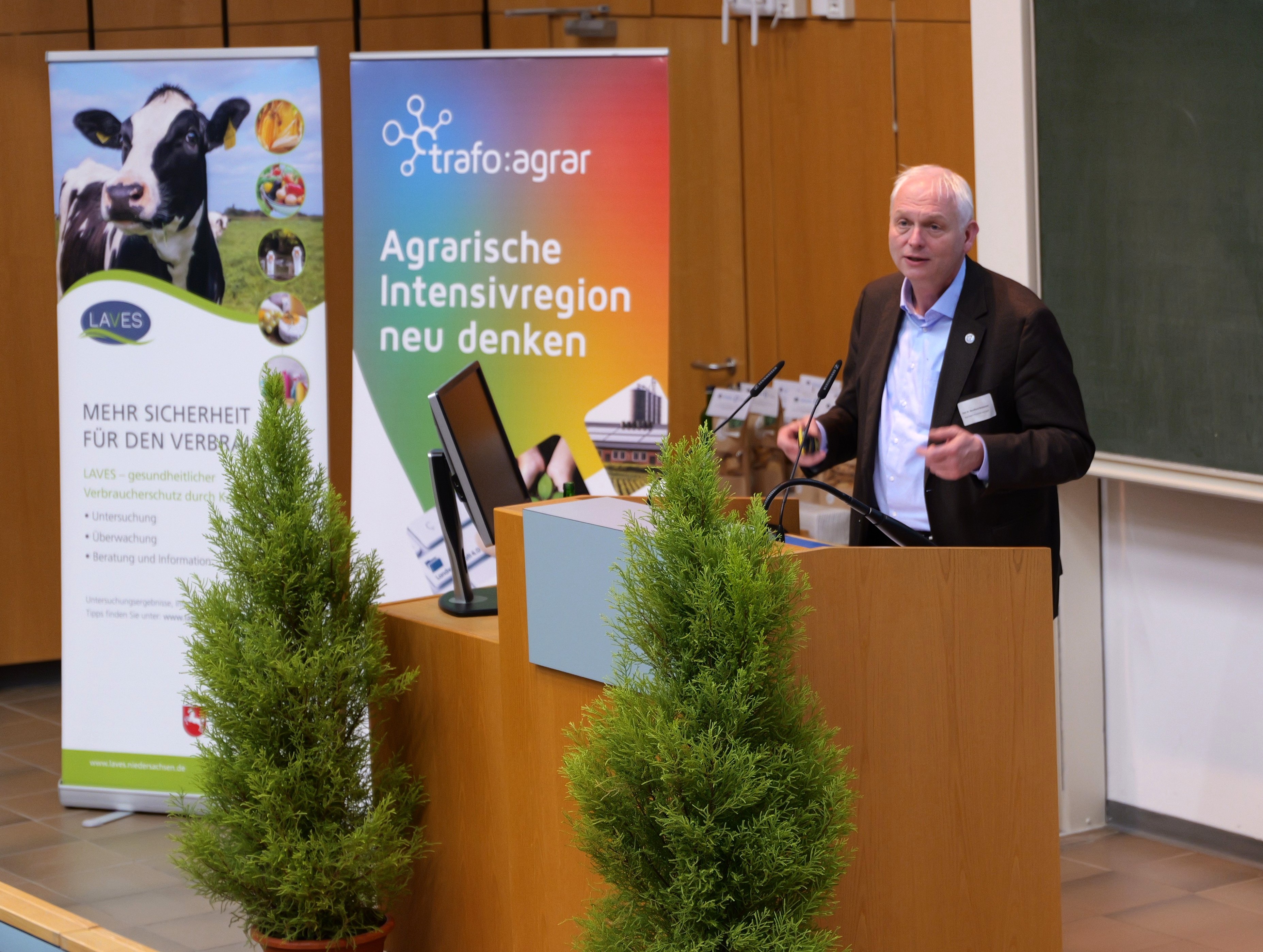 Das Niedersächsische Landesgesundheitsamt (NLGA), das Niedersächsische Landesamt für Verbraucherschutz und Lebensmittelsicherheit (LAVES), die Tierärztliche Hochschule Hannover (TiHo) und der Verbund Transformationsforschung agrar Niedersachsen (trafo:agrar) luden zur Hybridveranstaltung „One Health und Ernährung im Wandel“ an der TiHo Hannover ein. Im Mittelpunkt stand der Austausch über Chancen und Herausforderungen zukünftiger Ernährungssysteme im Sinne des One Health Prinzips – eine Gesundheit von Mensch, Tier und Umwelt.