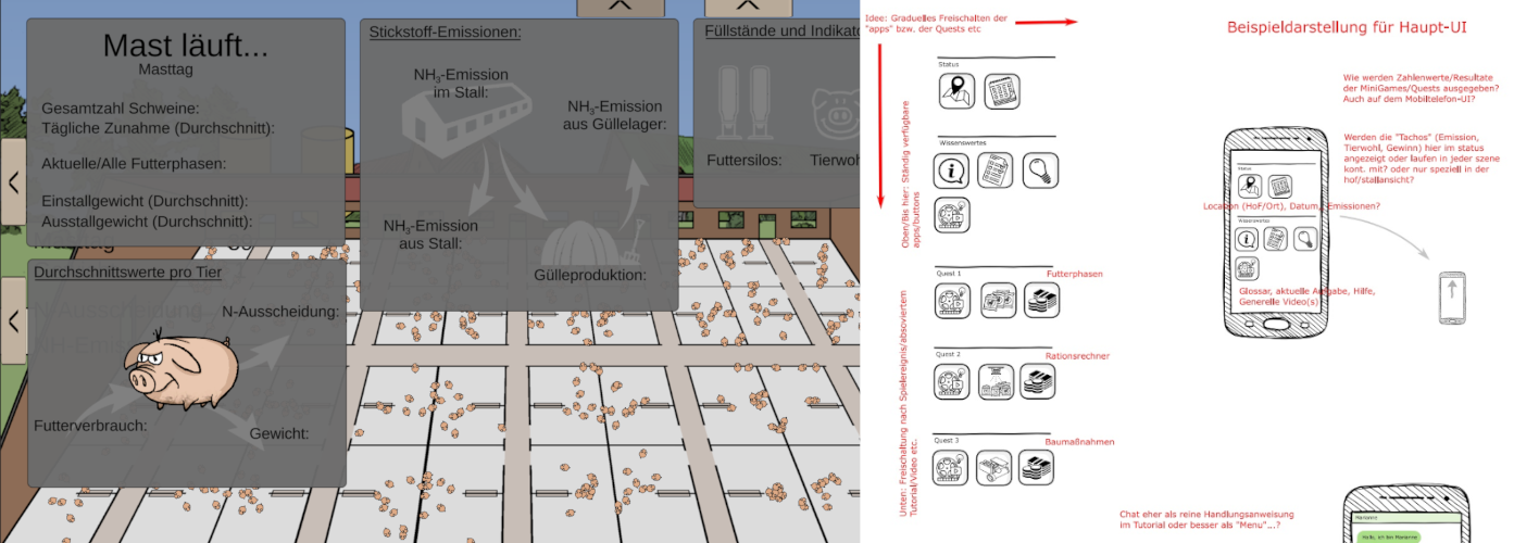 All dies galt es herauszufinden, während gleichzeitig die Grundlagen geschaffen werden mussten, um aussagekräftige und auf wissenschaftliche Daten gestützte Berechnungen für Emissionen von Stickstoffverbindungen in Schweine haltenden Betriebe zu ermöglichen. In- und Output-Faktoren wurden eruiert, Systemzusammenhänge zusammengefasst, Rückkopplungen und Wechselwirkungen beleuchtet. Gleichzeitig brauchte es ein didaktisches Konzept. Was soll vermittelt werden, was möchten die Nutzer*innen lernen? Und außerdem: Welche Maßnahmen können überhaupt ergriffen werden und wie wichtig sind diese, wie gut sind sie umzusetzen und wie wirksam können sie sein?