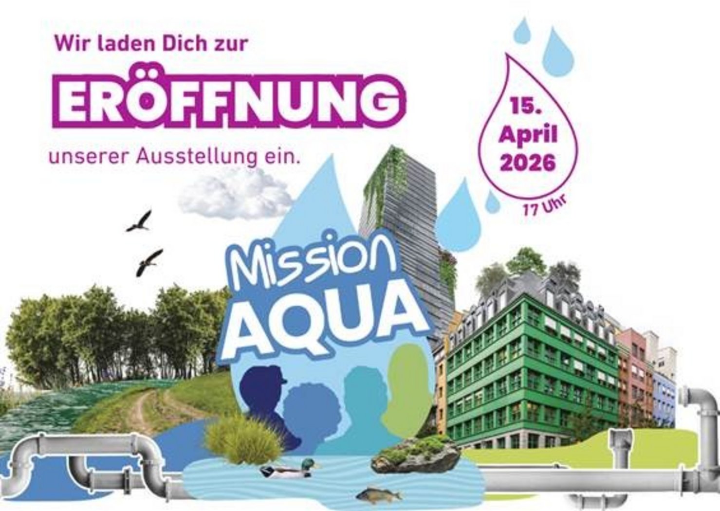 wir schmeißen euch ins Wasser! Macht mit uns am 15. April den ersten Deep Dive in unsere neue DBU-Ausstellung „Mission AQUA“ und kommt zur Eröffnungsfeier. Hier erlebt ihr Wasser wie nie zuvor: spielerisch, fundiert und mitreißend.