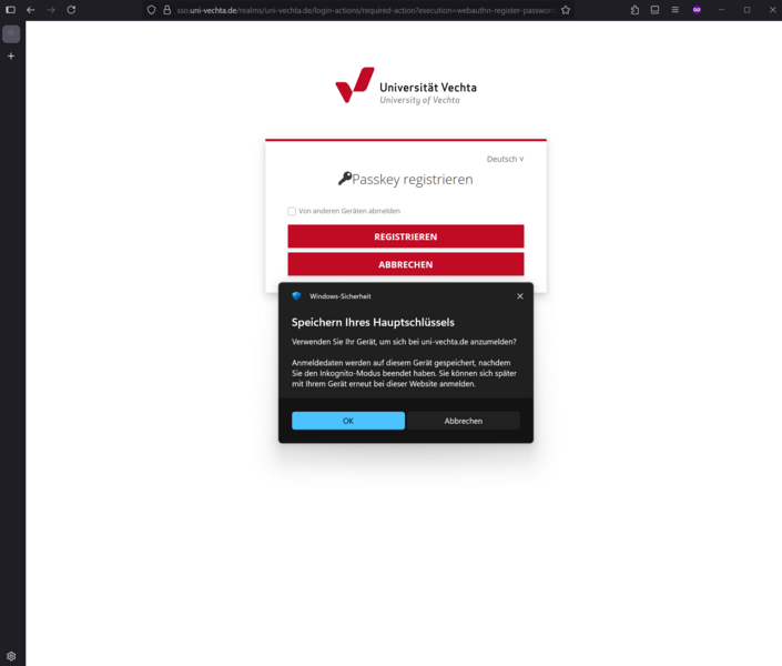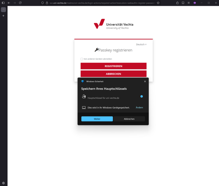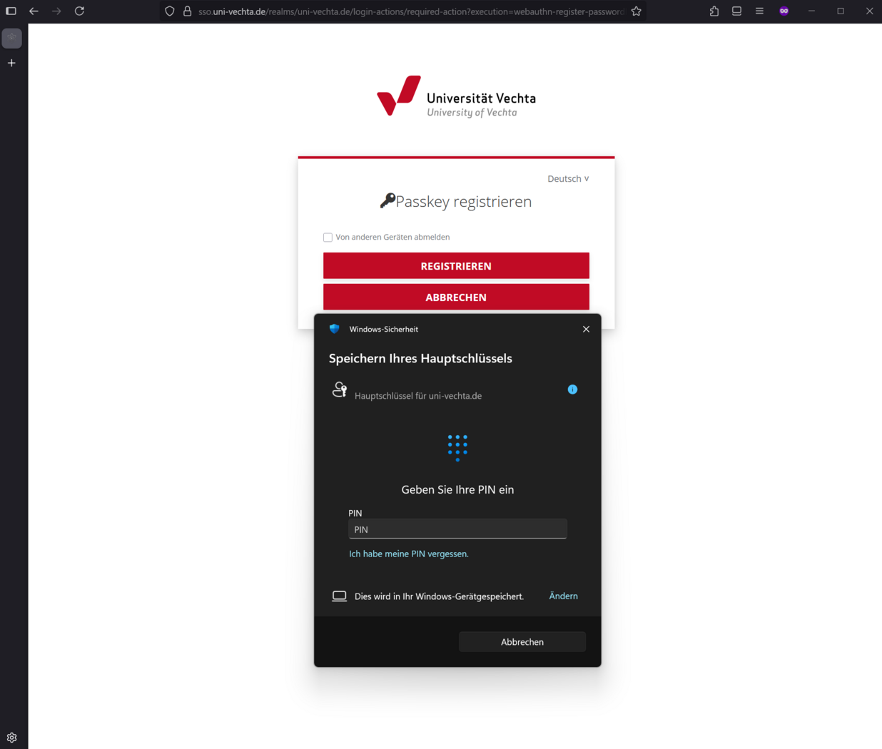 Zur Einrichtung des Passkeys melden sie sich bitte einmalig im Passkey-Portal Ihres Winddows-Rechners an.