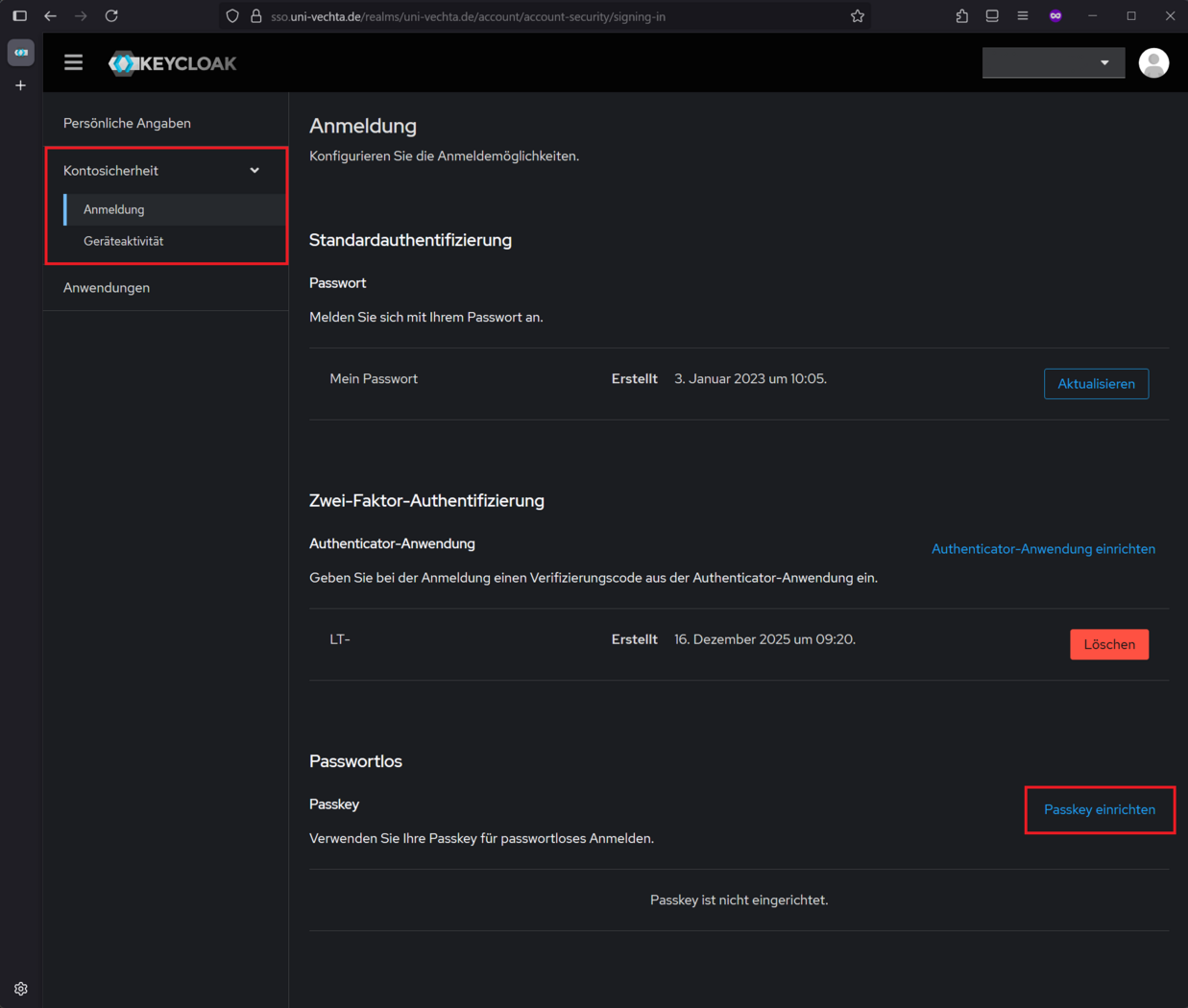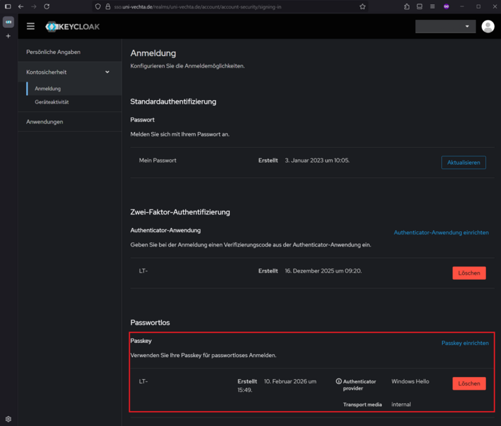 Damit ist die Einrichtung abgeschlossen. Der Passkey sollte nun auch in der Übersicht angezeigt werden.