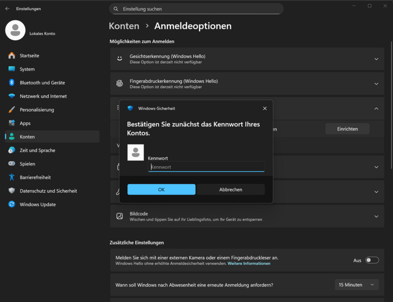 Alternativ zu einem PIN kann je nach Gerät auch eine Gesichts- oder Fingerabdruckerkennung verwednet werden.