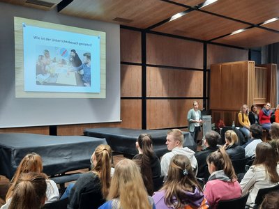 Der Vortrag fand im gut besuchten Raum Q016 statt und stieß bei den Teilnehmer:innen auf großes Interesse – darunter auch einige Gäste der parallel stattfindenden Hochschulinformationswoche.