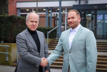 Seit über 40 Jahren ist Universitätsprofessor Dr. Steffen Wittkowske im Öffentlichen Dienst tätig. Dazu gratulierte ihm Interimspräsident Prof. Dr. Thomas Bals