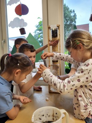 Im Mittelpunkt stand die Planung und Durchführung handlungsorientierter Lernstationen zu den 17 Zielen für nachhaltige Entwicklung (SDGs). Ob beim Bau eines Wasserfilters, beim Herstellen sogenannter „Samenbomben“ als Nahrungsquelle für Bienen oder bei der Analyse von Lebensmitteltransportwegen – die Kinder konnten an allen Stationen forschend und handelnd aktiv werden. Den Abschluss der einzelnen Projekttage bildete jeweils eine gemeinsame Umweltkonferenz mit Kindern, Lehrkräften und Studierenden, bei der deutlich wurde: Nachhaltigkeit beginnt im Kleinen – und wirkt gemeinsam am stärksten.