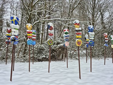 Wo vor über 2000 Jahren mutmaßlich Römer gegen Germanen in der sogenannten Varusschlacht erbitterte Kämpfe austrugen, zeigte sich am 31. Januar 2026 eine weiß überzogene Schneelandschaft. An diesem Tag führte Gesa Neugebauer mit den Teilnehmenden Ihres Seminars zu außerschulischen Lernprozessen im Sachunterricht eine Exkursion zum mutmaßlichen Schauplatz der Varusschlacht durch. Die Studierenden erlebten das Programm „Geschichten erzählen – Geschichte erleben“ aus der Perspektive von Drittklässler:innen, wozu auch das Anlegen von Nachbildungen germanischer und römischer Kleidung gehörte. Eine Gesprächsrunde mit dem museumspädagogischen Leiter sowie der verantwortlichen Mitarbeiterin für die Vermittlungsarbeit im schulischen Kontext, die eigenständige Erkundung der Museumsausstellung in Kleingruppe sowie eine abschließende Reflexion über die Eignung des Ortes als einem außerschulischen Lernort für historisches Lernen im Sachunterricht rundeten den Exkursionstag ab.