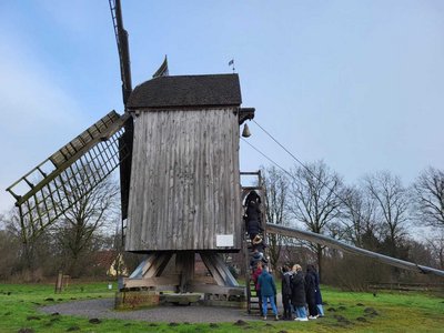 Ein wichtiger Bestandteil des Sachunterrichts ist die Einbeziehung außerschulischer Lernorte und das Lernen außerhalb des Klassenzimmers. Auch 23 Sachunterrichtsstudierende hatten am 30. Januar 2025 die Gelegenheit, zusammen mit ihrer Seminarleiterin Gesa Neugebauer einen außerschulischen Lernort kennenzulernen und auf sein didaktisches Lernpotenzial für Grundschüler:innen zu untersuchen. Die Ganztagesexkursion führte ins Museumsdorf Cloppenburg, wo die Studierenden gleich zwei Führungen zu den Grundschul-Angeboten „Vom Korn zum Brot“ und „Dorfschulreife“ bekamen und dem Leiter der museumspädagogischen Abteilung, Herrn Lukas Aufgebauer, ihre im Seminar entwickelte Fragen zum Lernort stellen konnten.