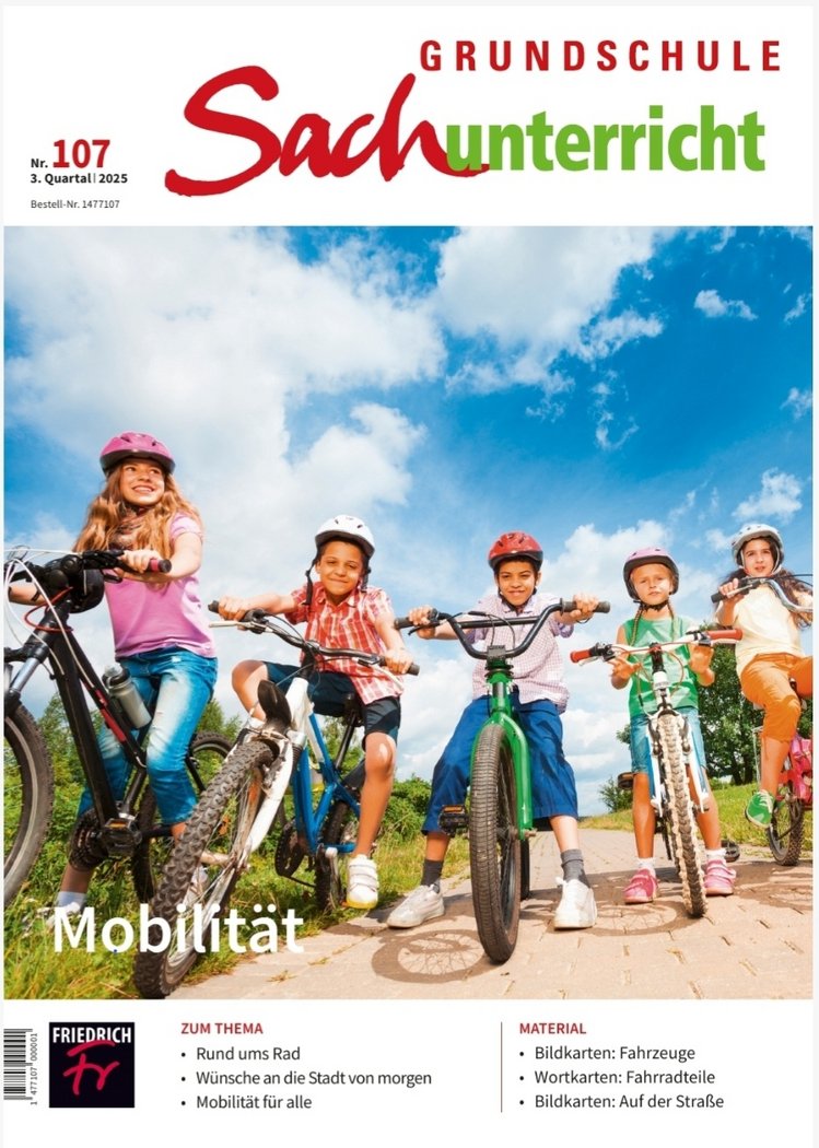 Vor diesem Hintergrund haben Michael Otten, Mitherausgeber der Zeitschrift Grundschule Sachunterricht, und Prof.in Dr.in Sandra Tänzer von der Universität Erfurt ein neues Themenheft herausgegeben. Die Ausgabe 107 der Fachzeitschrift, erschienen im August 2025, widmet sich dem Schwerpunkt „Mobilität“.