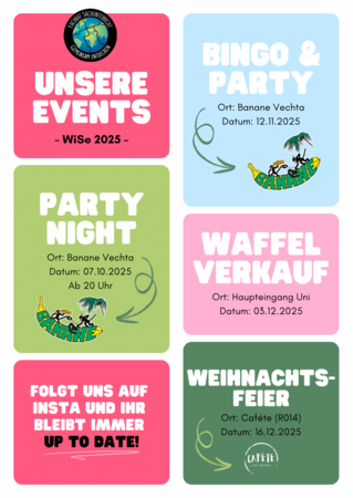 Wir laden euch herzlich ein, mit uns am 07.10.2025 ab 20 Uhr in der Banane gemeinsam die ersten Unitage zu feiern. Hier könnt ihr euch mit anderen Studierenden und uns natürlich austauschen und vernetzen. Unsere Klopferangebote könnt ihr wie gewohnt ab 21 Uhr nutzen.