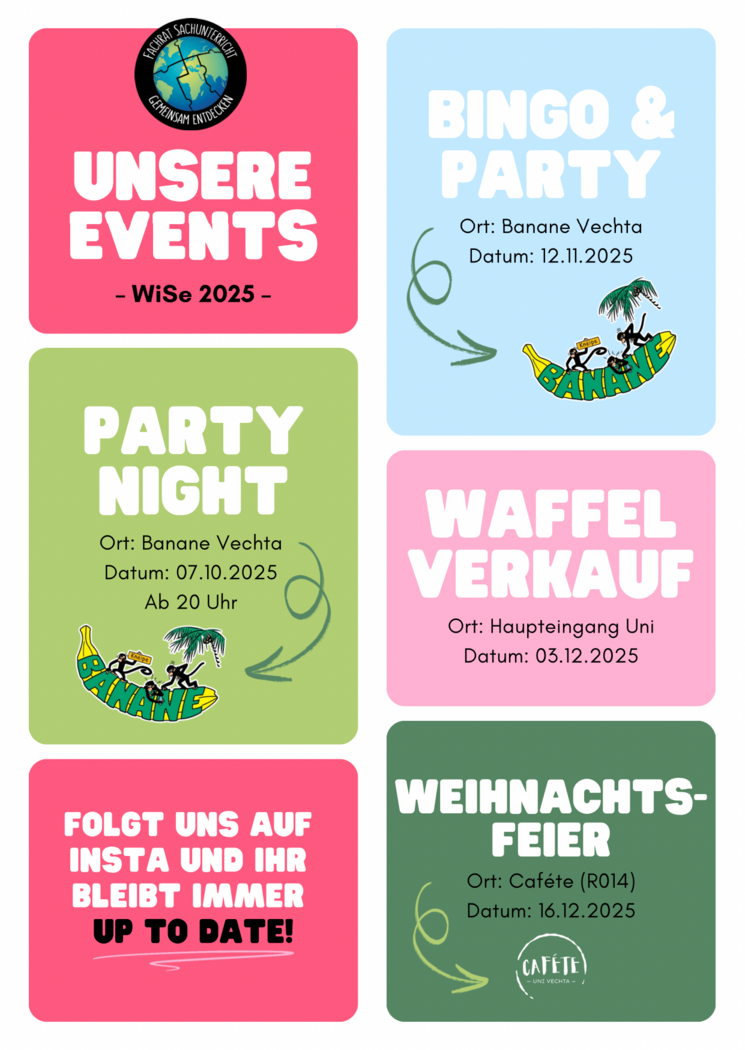 Der Fachrat Sachunterricht ist auf Instagram (@fachratsachunterricht) zu finden. Über Instagram halten wir euch immer auf dem aktuellen Stand und teilen Infos zu Veranstaltungen o. ä. mit euch. Gerne könnt ihr auch über Instagram mit uns in Kontakt treten.