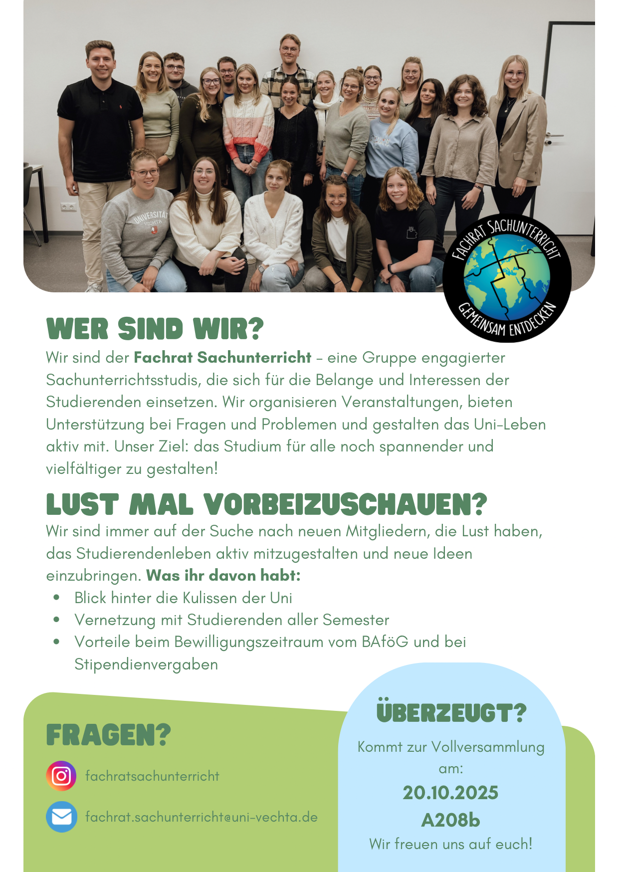 Wir laden euch ♥-lich ein zu unserer Vollversammlung ein. In dieser könnt ihr in den Fachrat gewählt werden oder einfach mal einen Blick hinter die Kulissen werfen.