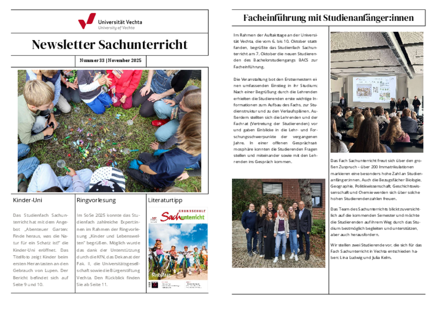 Um den Studierenden regelmäßig Informationen rund um das Fach Sachunterricht anzubieten, soll zweimal im Semester ein Newsletter erscheinen.