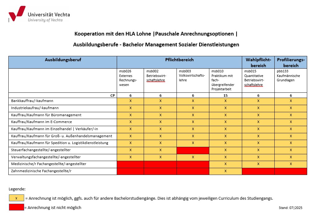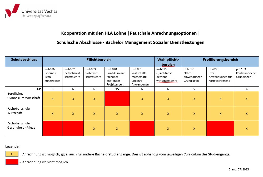 Im Rahmen eines intensiven Austauschs zwischen den Handelslehranstalten (HLA) Lohne und dem Kollegium des Studiengangs Management Sozialer Dienstleistungen wurde eine enge Zusammenarbeit vereinbart. Ziel dieser Partnerschaft ist es, die Durchlässigkeit zwischen den Bildungssystemen zu erhöhen und einen nahtlosen Übergang zur Hochschule zu ermöglichen. Dies führte zur Kooperationsvereinbarung „Modellversuch Durchlässigkeit – Fluide Bildungsübergänge gemeinsam gestalten“, die am 17. Juni 2025 unterzeichnet wurde.